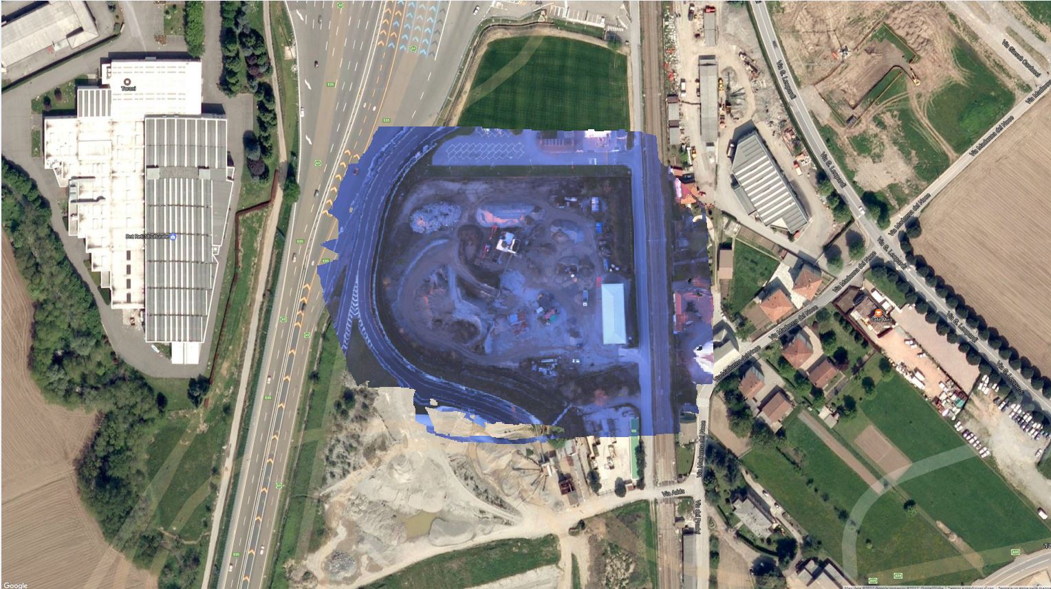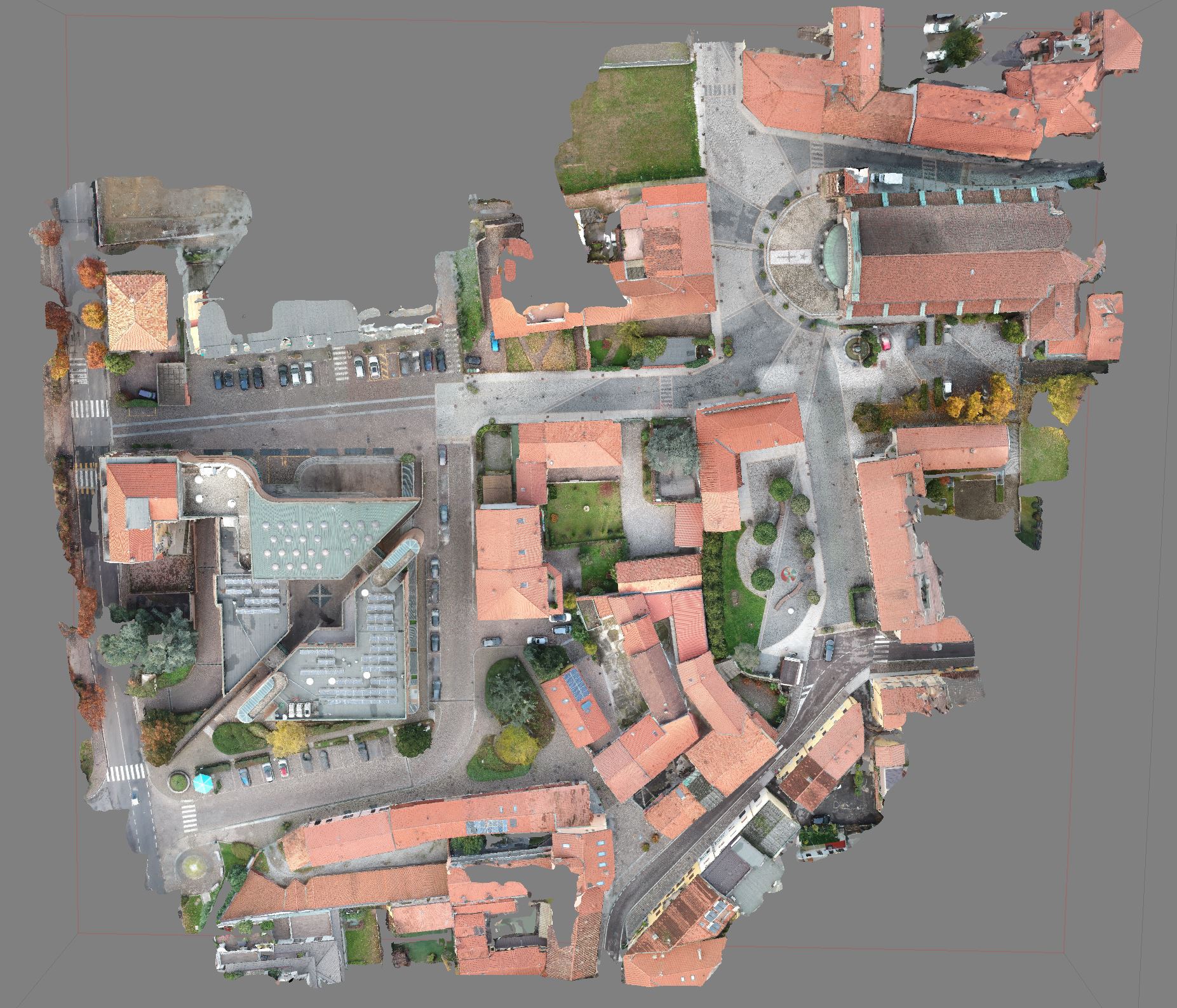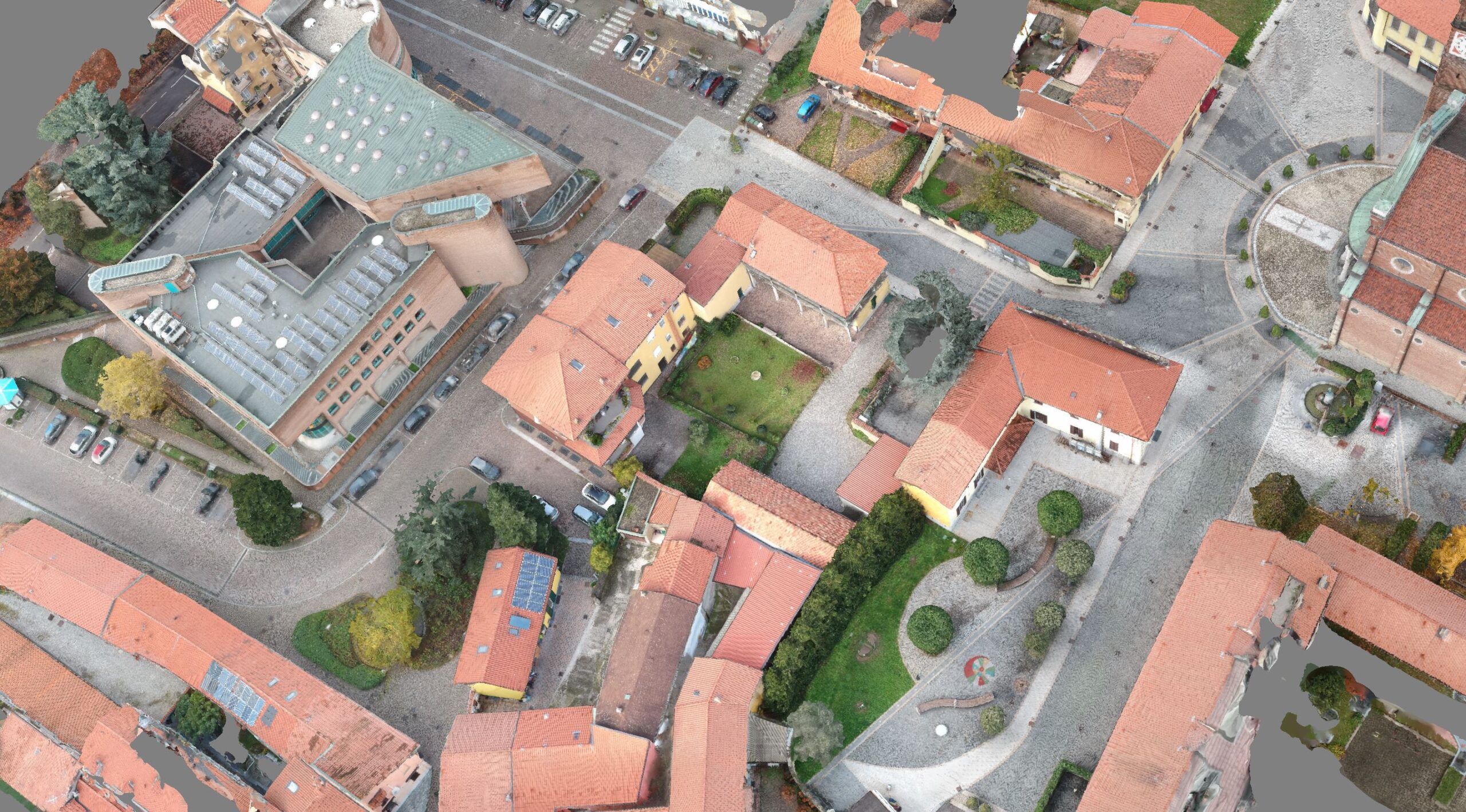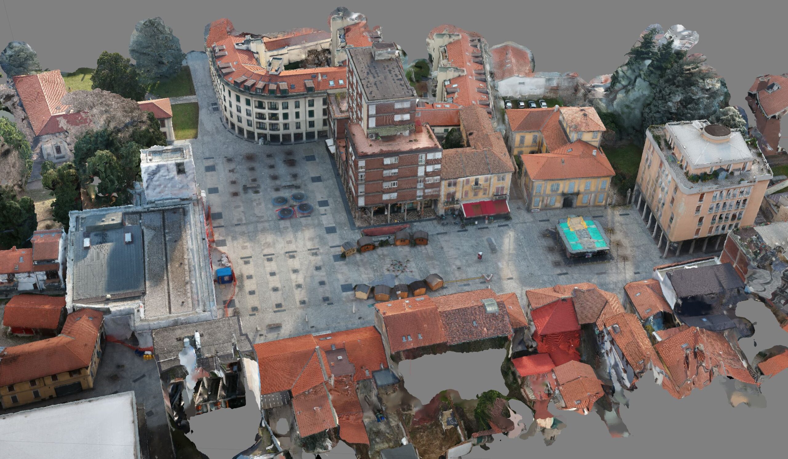 Clouds of photogrammetric points for the three-dimensional and georeferenced replacement of the portion of the investigated territory of a building or industrial areas.