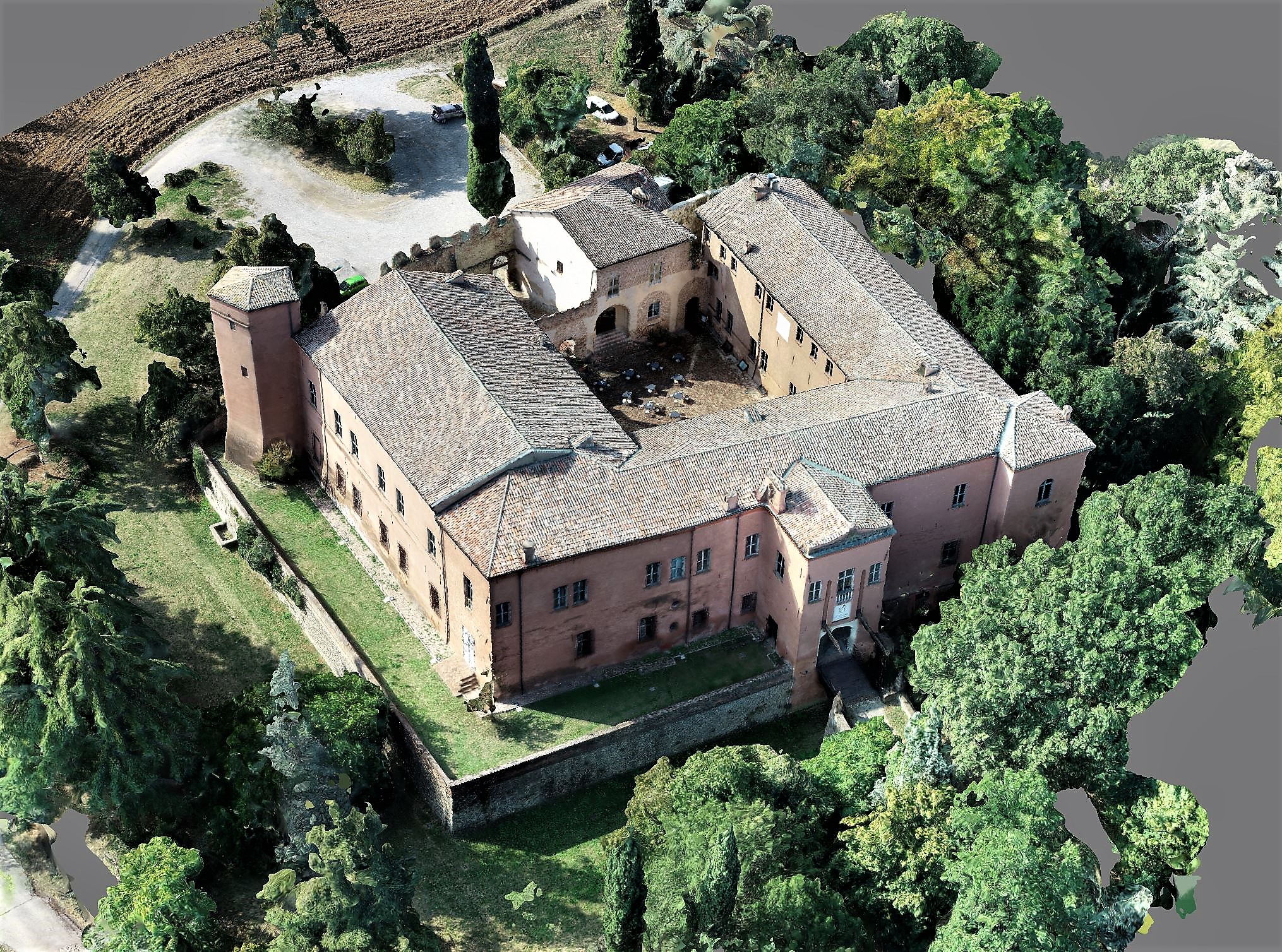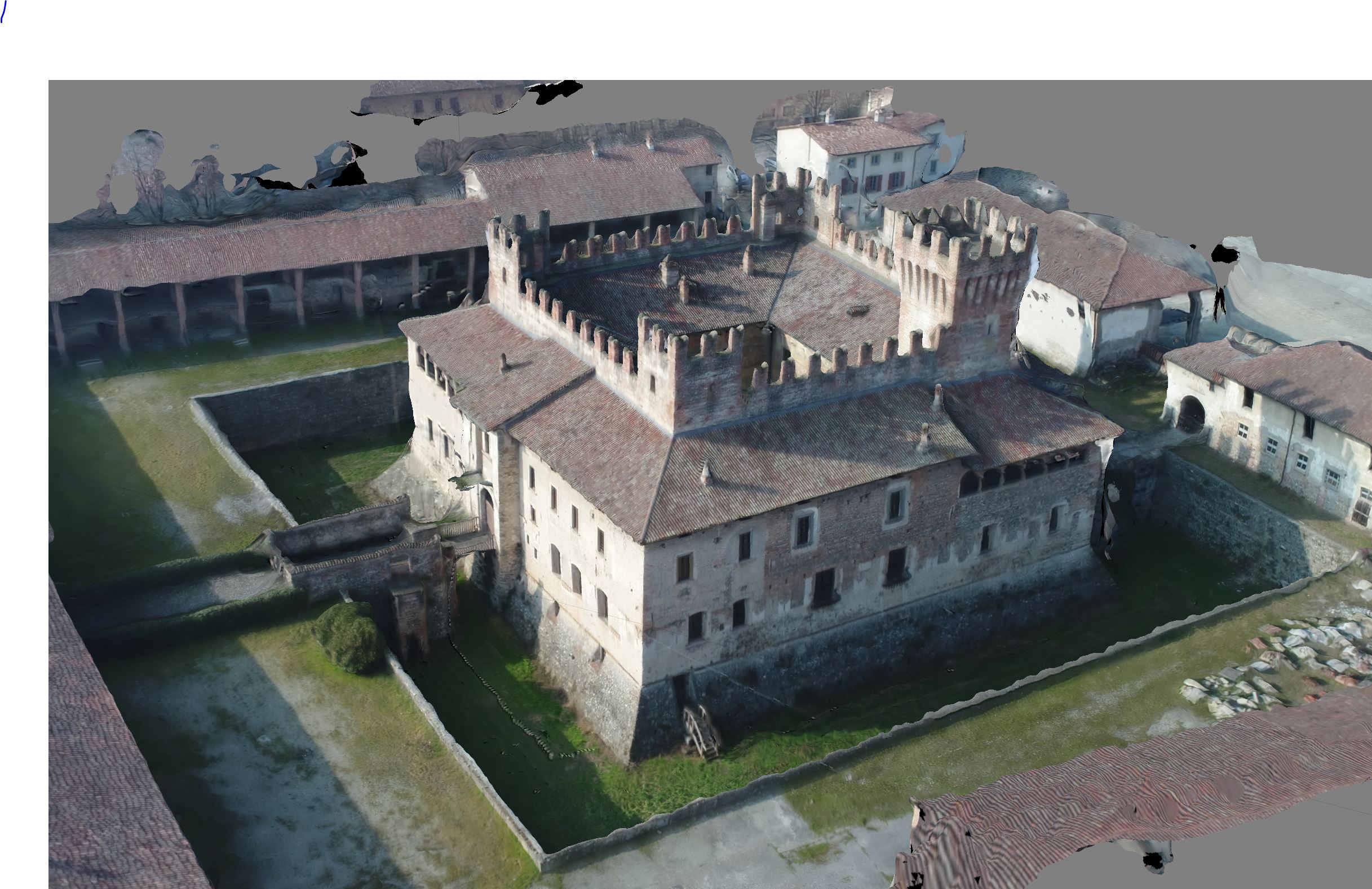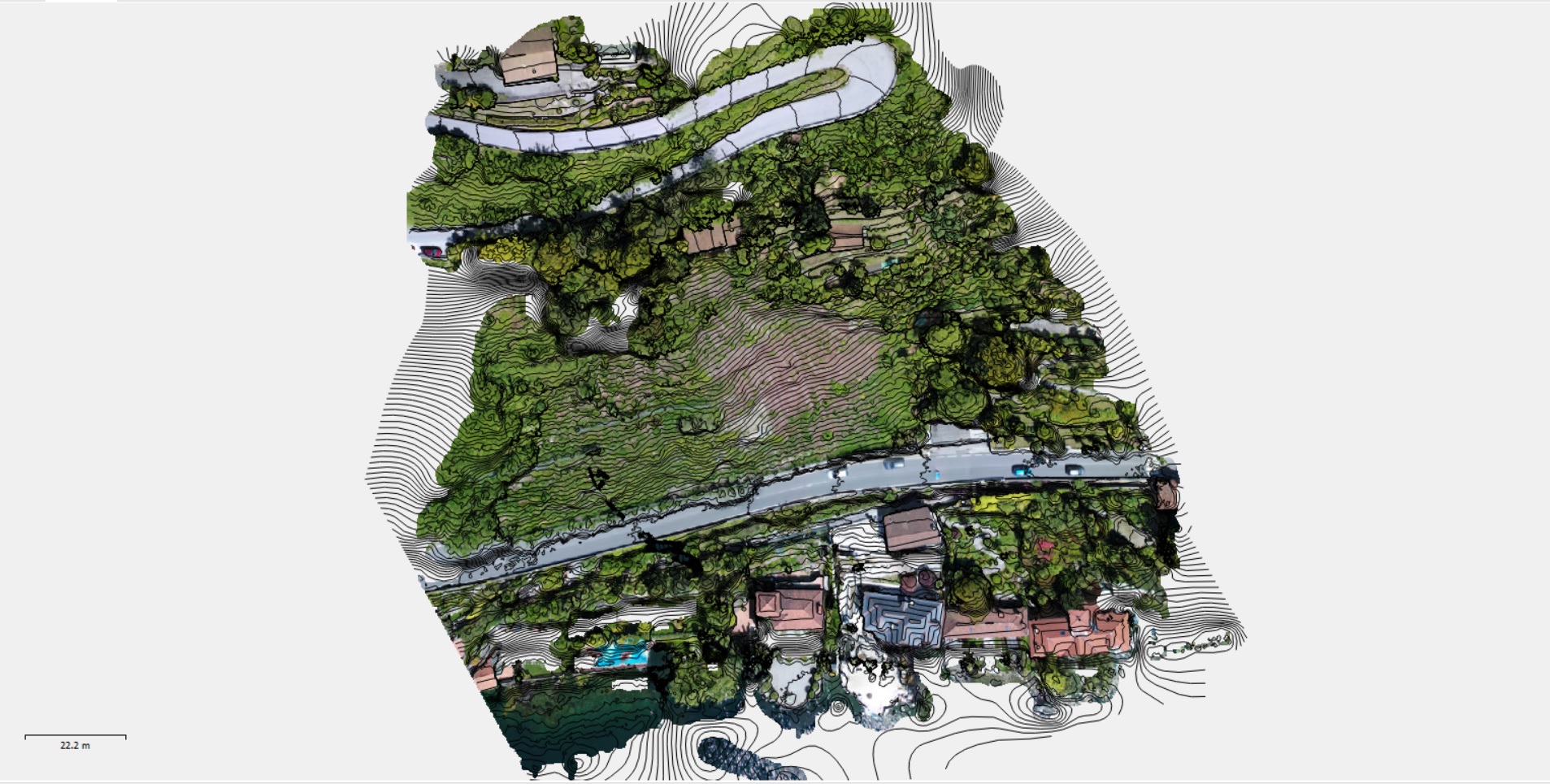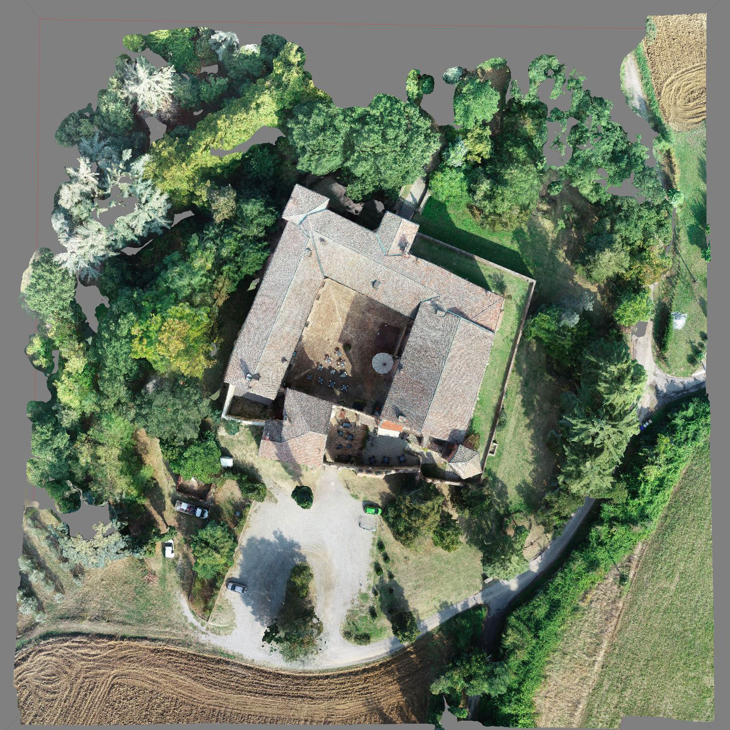 Clouds of photogrammetric points for the three-dimensional and georeferenced replacement of the portion of the investigated territory of a building or industrial areas.