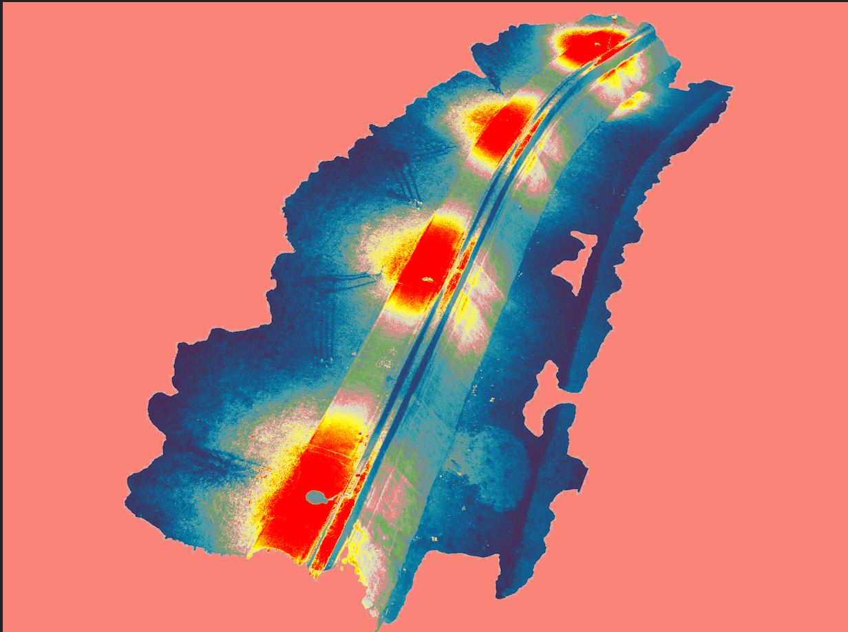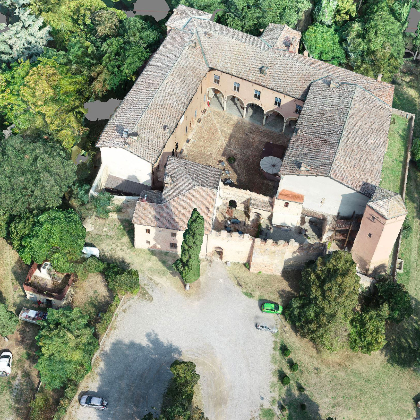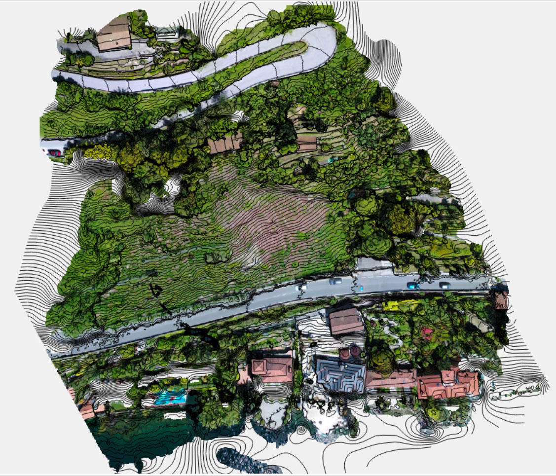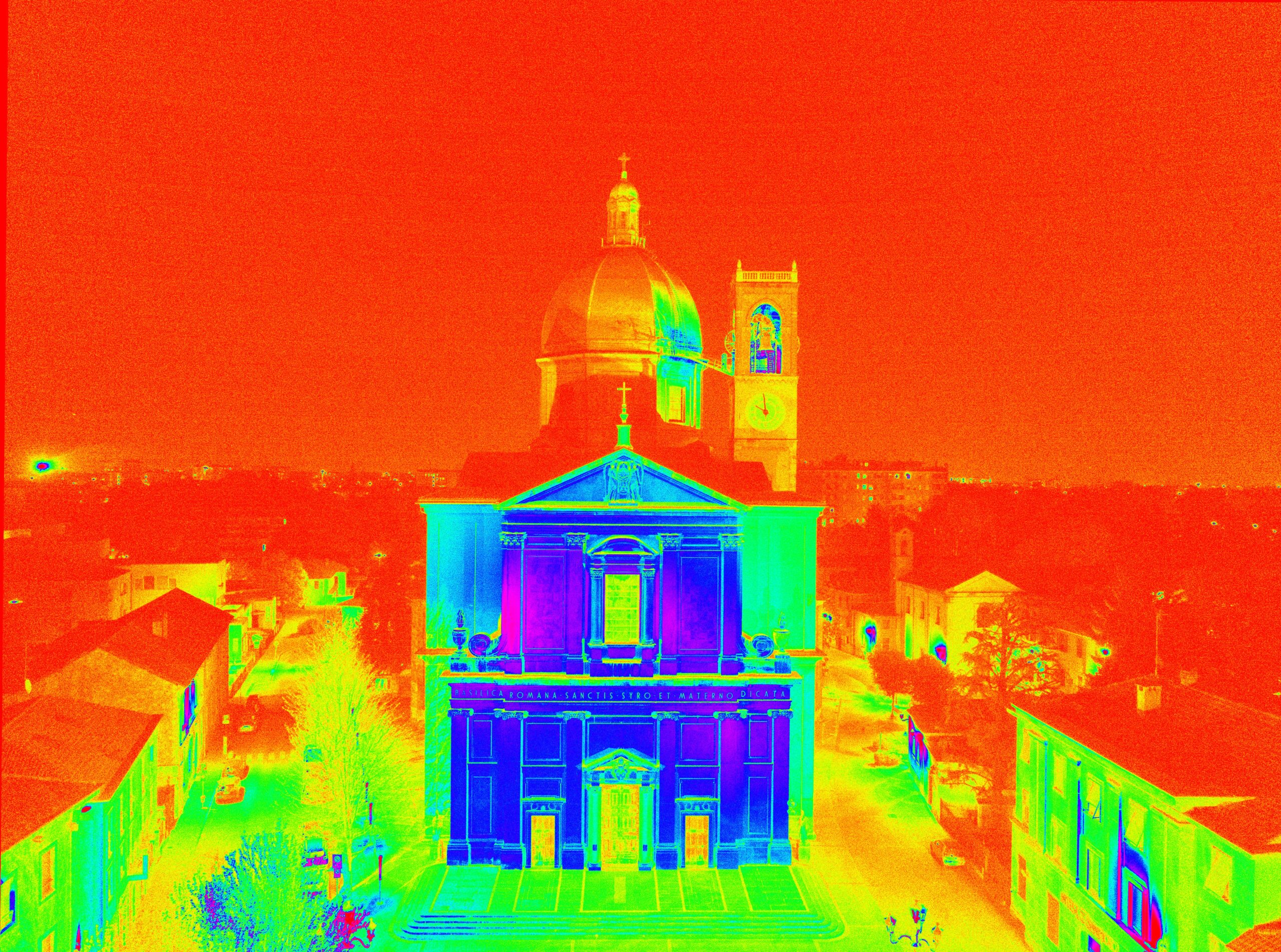 Clouds of photogrammetric points for the three-dimensional and georeferenced replacement of the portion of the investigated territory of a building or industrial areas.